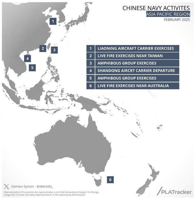 开源平台上出现的新态势图显示,中国海军在今年2月兵分多路,举行了6次重要海上活动,而这6次行动背后,似乎有着不同的用意。